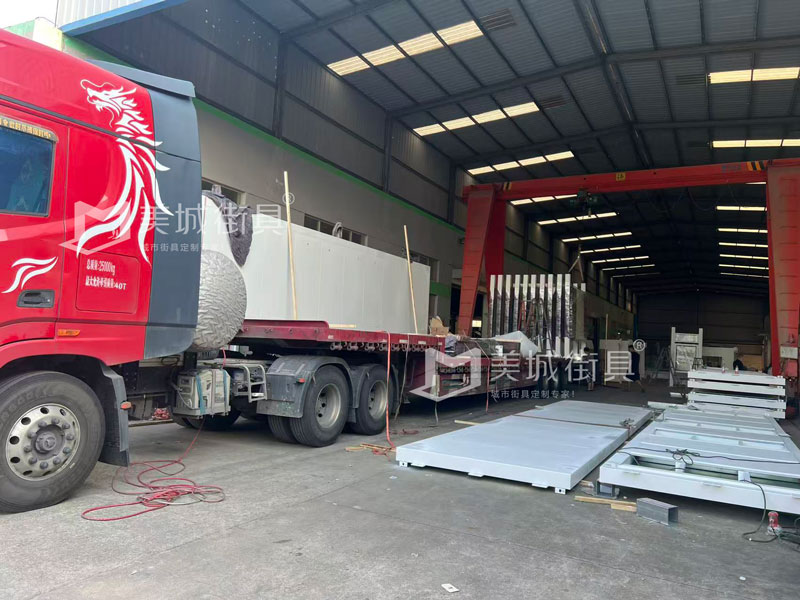 江蘇美城街具為新疆定制公交候車(chē)亭第一批發(fā)貨案例