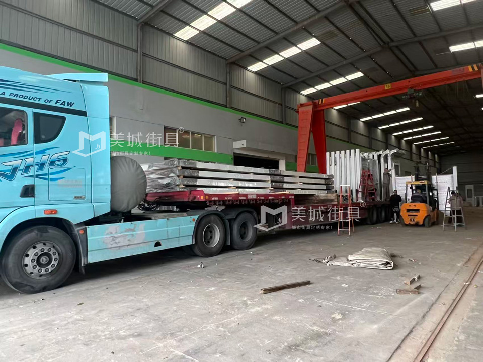 江蘇美城街具為新疆定制第六批候車亭公交站臺發(fā)貨案例